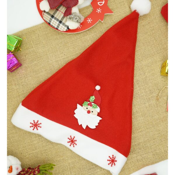 Caciulita de Mos Craciun, Embo,cu model de Mos Craciun si ornament fulg de nea, rosie, marime universala, material textil