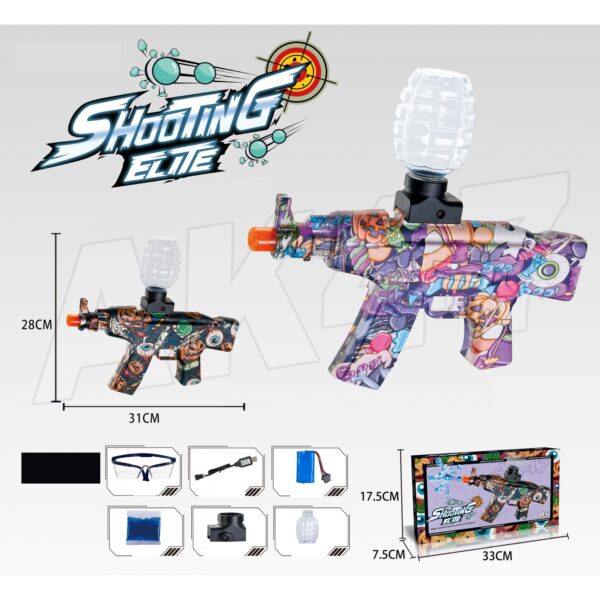 Mitraliera de jucarie electrica Embo cu bile de hidrogen de gel, gun bluster, tragere in rafala, varsta peste 6 ani, ochelari de protectie, 5000 de bile incluse, cablu de incarcare, 28×31 cm, AK47, mov