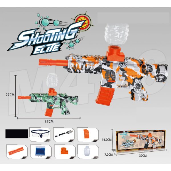 Mitraliera de jucarie electrica Embo cu bile de hidrogen de gel, gun bluster, tragere in rafala, varsta peste 6 ani, ochelari de protectie, 5000 de bile incluse, cablu de incarcare, 27×37 cm, M416, portocaliu