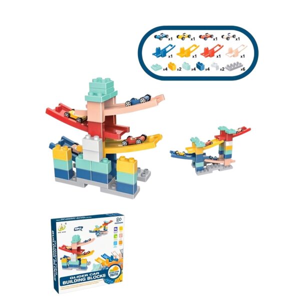 Set piese pentru constructie, Embo, Rampa auto, 30 piese, Masinute incluse