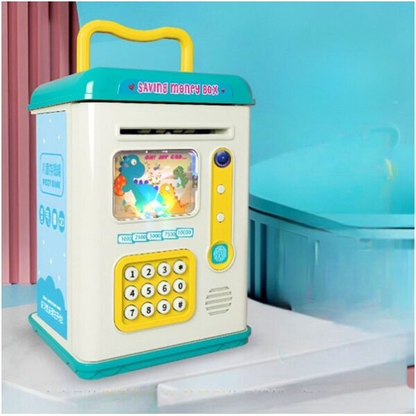 Set Pusculita pentru Copii, Embo, Tip ATM, Parola cu Amprenta, 13.5 x 11.5 x 20 cm, Albastru