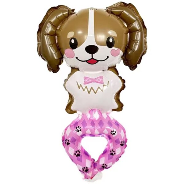 Balon din Folie Metalizata, Embo, Figurine Animalute, Tip Bratara, Model Caine, Ambalaj Individual, Pai Inclus, Umflare cu Aer sau Heliu, Maro