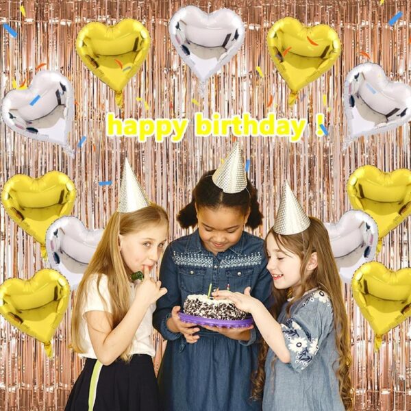 Set 2 Baloane din Folie Metalizata, Embo, Model Inimi, Tema Ziua Indragostitilor, 45 cm, Ambalaj Individual, Pai Inclus, Umflare cu Aer sau Heliu, Argintiu/Auriu