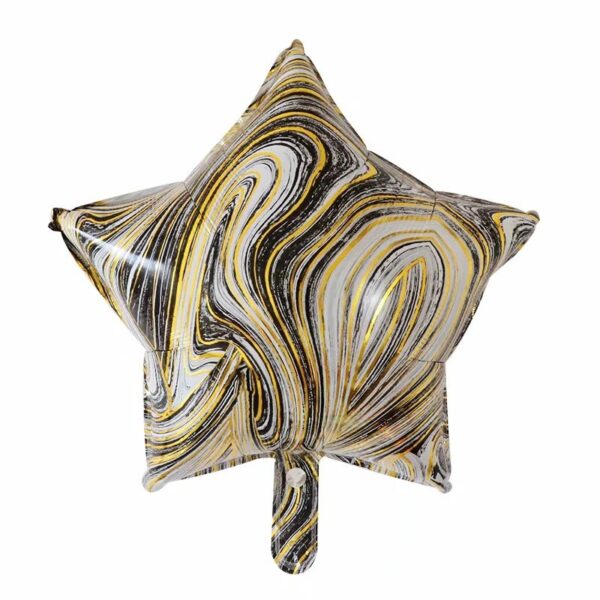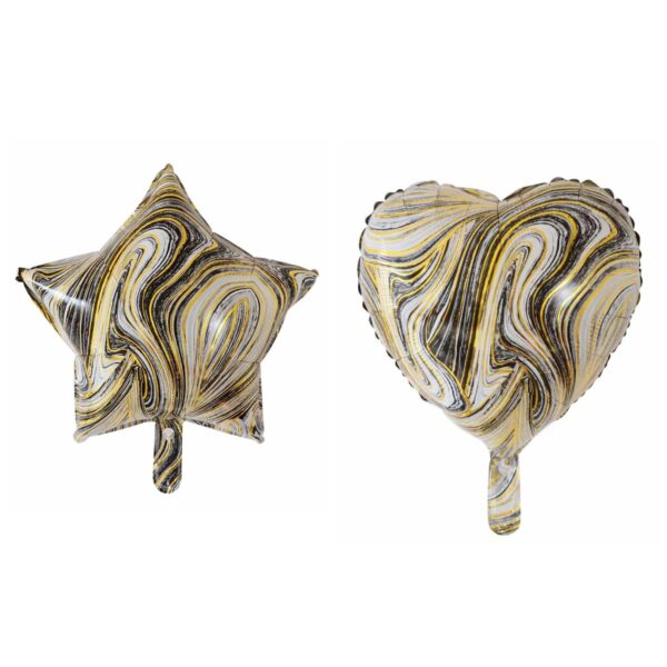 Set 2 Baloane din Folie Metalizata, Embo, Figurine Inima si Stea, Model Marmura, 45 cm, Ambalaj Individual, Pai Inclus, Umflare cu Aer sau Heliu, Bej