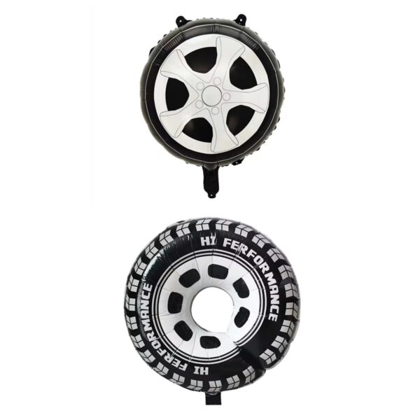 Set 2 Baloane din Folie Metalizata, Embo, Figurine Roti, Model Masini, 75-80 cm cm, Ambalaj Individual, Pai Inclus, Umflare cu Aer sau Heliu, Negru