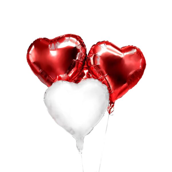 Set 3 Baloane din Folie Metalizata, Embo, Model Inimi, Tema Ziua Indragostitilor, 45 cm, 2 Rosii, 1 Alb, Ambalaj Individual, Pai Inclus, Umflare cu Aer sau Heliu, Alb/Rosu