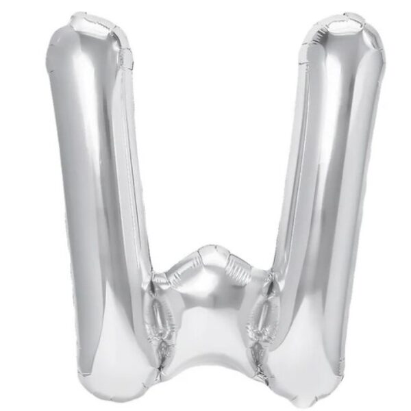 Balon Folie Metalizata Litera W, Embo, 40 cm, Umflati cu Heliu sau Aer, Ambalaj Individual, Pai inclus, Argintiu