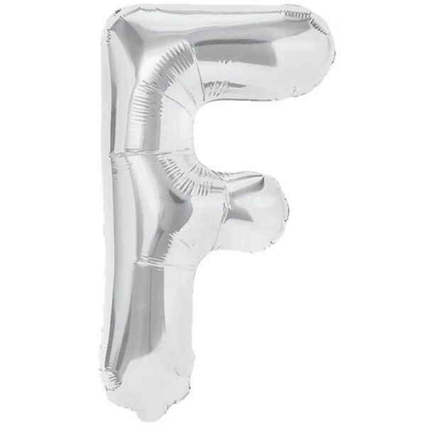 Balon Folie Metalizata Litera F, Embo, 80 cm, Umflati cu Heliu sau Aer, Ambalaj Individual, Pai inclus, Argintiu