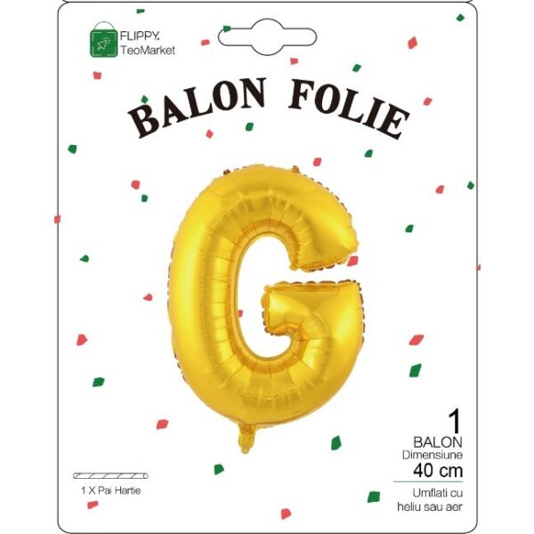 Balon Folie Metalizata Litera G, Embo, 40 cm, Umflati cu Heliu sau Aer, Ambalaj Individual, Pai inclus, Auriu