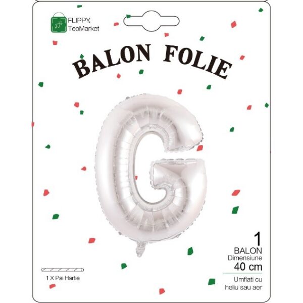 Balon Folie Metalizata Litera G, Embo, 40 cm, Umflati cu Heliu sau Aer, Ambalaj Individual, Pai inclus, Argintiu