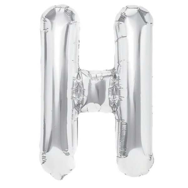 Balon Folie Metalizata Litera H, Embo, 80 cm, Umflati cu Heliu sau Aer, Ambalaj Individual, Pai inclus, Argintiu