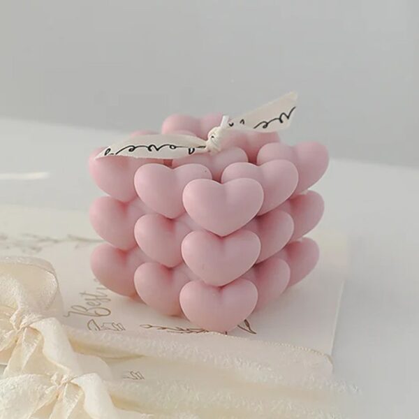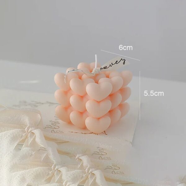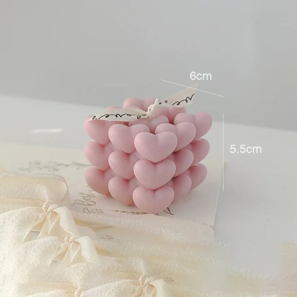 Lumanare Parfumata Decorativa, Embo, Model Abstract Cub din Inimioare, Lumanare pentru Diferite Ocazii, 6 x 5.5 cm, Aroma de Oregano si Narcise, Roz