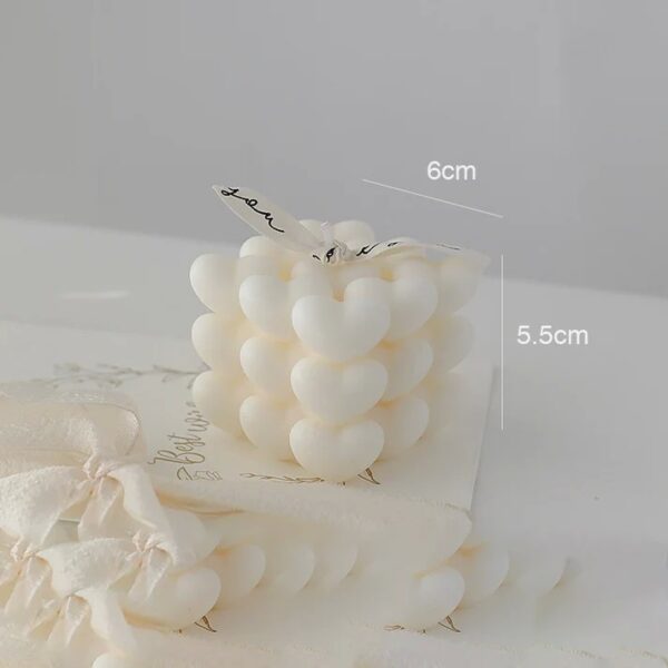 Lumanare Parfumata Decorativa, Embo, Model Abstract Cub din Inimioare, Lumanare pentru Diferite Ocazii, 6 x 5.5 cm, Aroma de Frezie, Alb