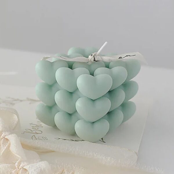 Lumanare Parfumata Decorativa, Embo, Model Abstract Cub din Inimioare, Lumanare pentru Diferite Ocazii, 6 x 5.5 cm, Aroma de Clopotel de Vant, Albastru