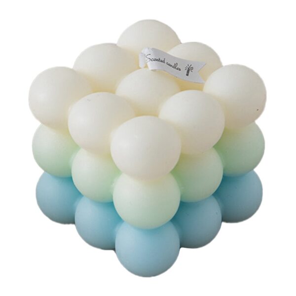 Lumanare Parfumata, Embo, din Ceara De Soia, Model Cub, Gradient in 3 Culori Pale, 6x6x6 cm, Aroma de Mare, Albastru deschis