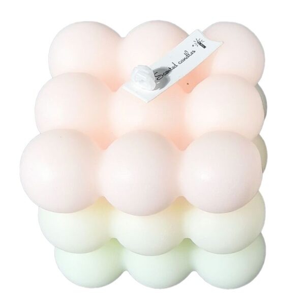 Lumanare Parfumata, Embo, din Ceara De Soia, Model Cub, Gradient in 3 Culori Pale, 6x6x6 cm, Aroma de Piersic Alb, Roz