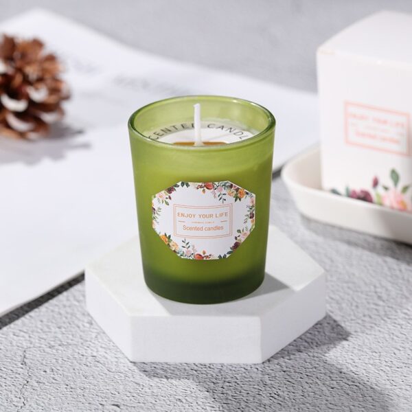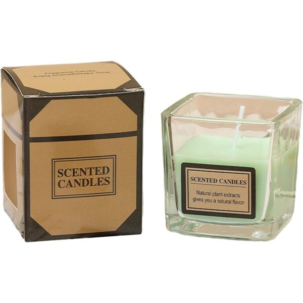 Lumanare Parfumata, Embo, Model Pahar Transparent, cu Ulei Esential, 4.8 x 5.4 x 5.5 cm, Aroma de Ceai Alb, Verde