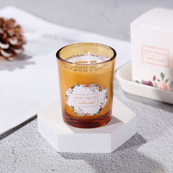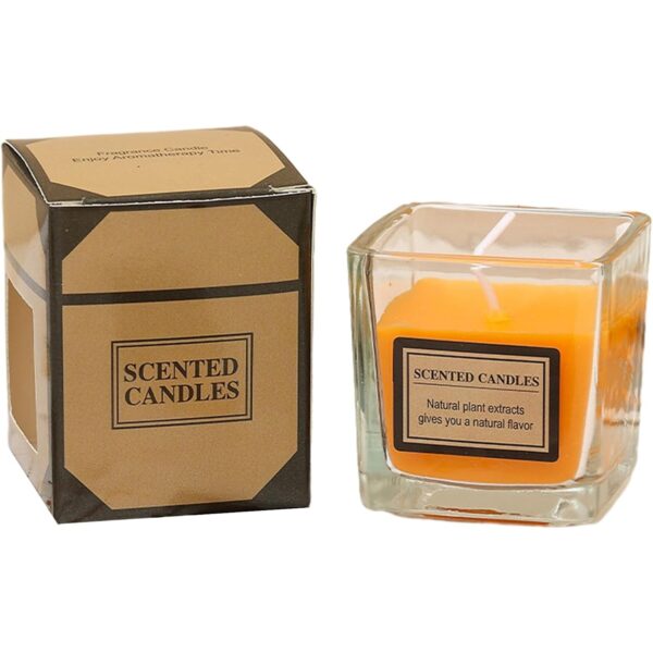 Lumanare Parfumata, Embo, Model Pahar Transparent, cu Ulei Esential, 4.8 x 5.4 x 5.5 cm, Aroma de Portocala, Portocaliu