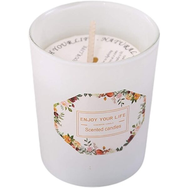 Lumanare Parfumata, Embo, Model Pahar Alb Mat, Aroma de Ceai Verde si Floare de Portocal, din Ceara de Soia, 6.2 x 5.2 cm, Alb