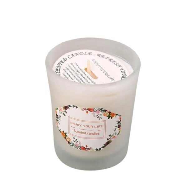 Lumanare Parfumata, Embo, Model Pahar Alb Transparent, Aroma de Frezie/Para, din Ceara de Soia, 6.2 x 5.2 cm, Alb