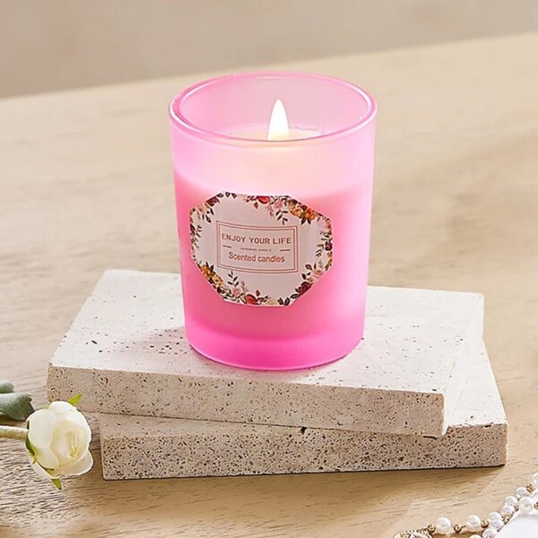 Lumanare Parfumata, Embo, Model Pahar Roz, Aroma de Lamaie si Trandafir, din Ceara de Soia, 6.2 x 5.2 cm, Roz