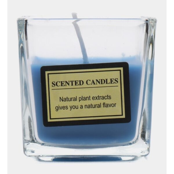 Lumanare Parfumata, Embo, Model Pahar Transparent, cu Ulei Esential, 4.8 x 5.4 x 5.5 cm, Aroma de Frezie, Albastru