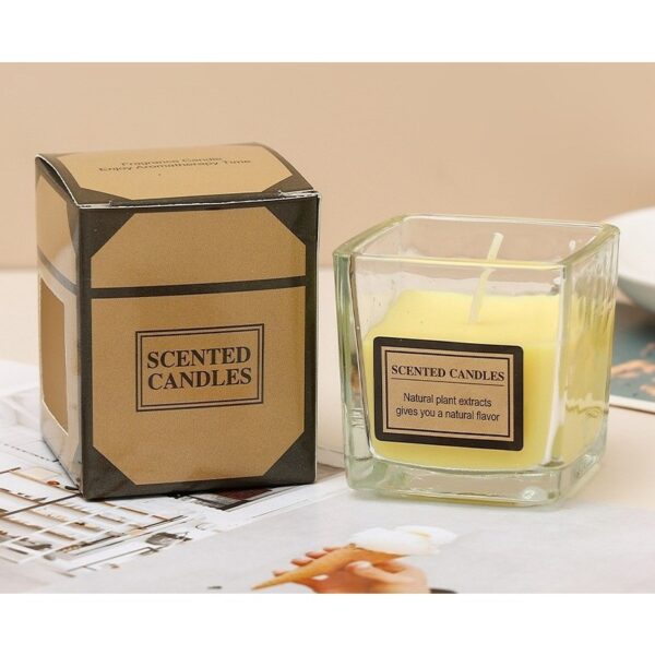 Lumanare Parfumata, Embo, Model Pahar Transparent, cu Ulei Esential, 4.8 x 5.4 x 5.5 cm, Aroma de Kaki Japonez, Galben