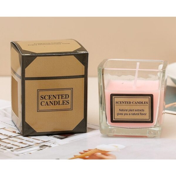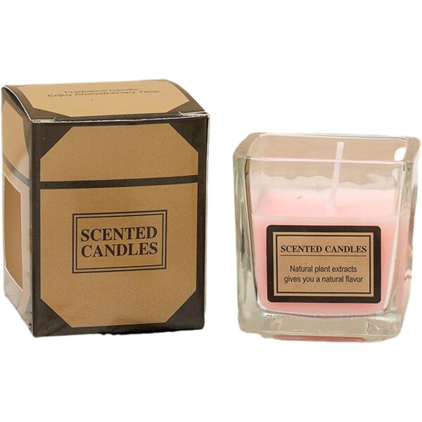 Lumanare Parfumata, Embo, Model Pahar Transparent, cu Ulei Esential, 4.8 x 5.4 x 5.5 cm, Aroma de Trandafir, Roz pal