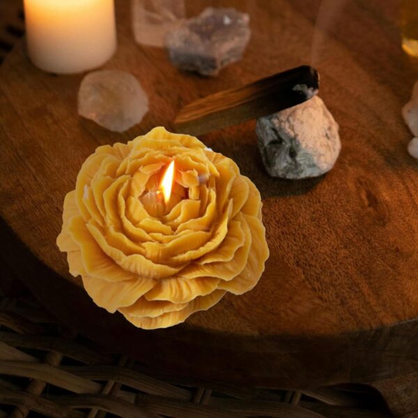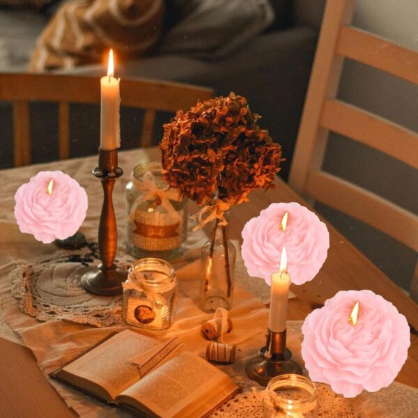 Lumanare Parfumata, Embo, Model Trandafir, Ardere 10h, 70 g, 7.5 x 3.5 cm, Parfum de Piersica, Roz Pal