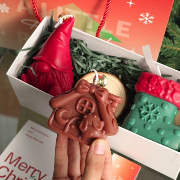 Lumanari Parfumate de Craciun, Embo, GIFT BOX din 3 Lumanari din Ceara de Soia, Model B Pitic, Casuta, Ciorap, 22.5 x 9.5 x 9 cm, Multicolor