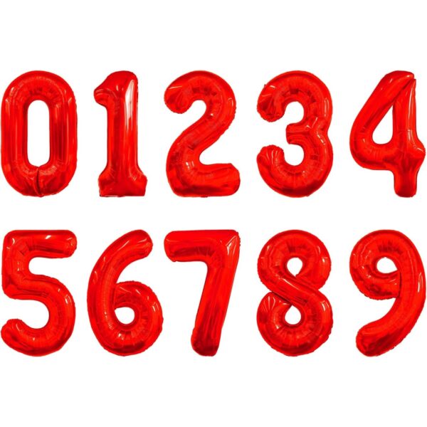 Balon din Folie Metalizata Embo, Figurina Cifra, Tema Aniversare 80 cm, Ambalaj Individual, Pai inclus, Umflare cu Aer sau Heliu, Rosu, Cifra 2