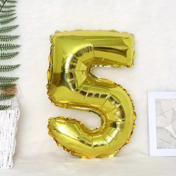 Balon din Folie Embo, Cifra 5, 81 cm, Pentru Aer sau Heliu, Bulk, Auriu