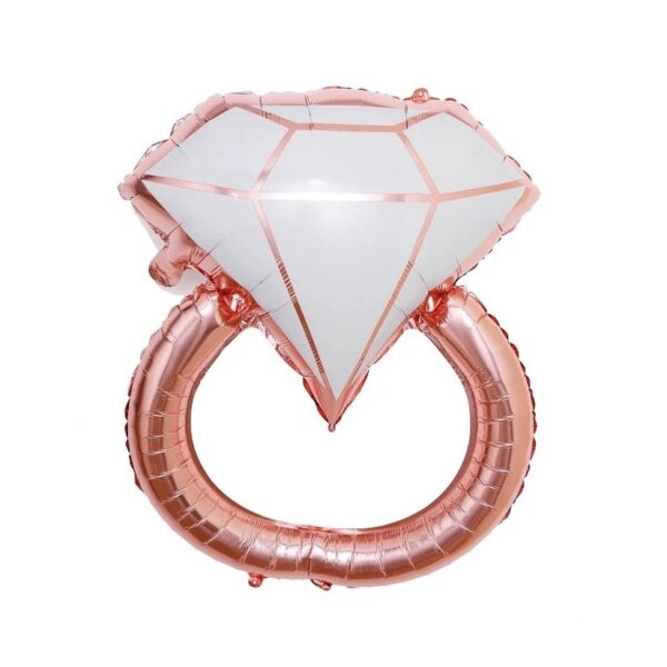 Balon din Folie Metalizata, Embo, Mini Figurine Nunta, Model Inel de Logodna, Tematica Cerere in Casatorie, 46×23 cm, Ambalaj Individual, Pai Inclus, Umflare cu Aer sau Heliu, Roz