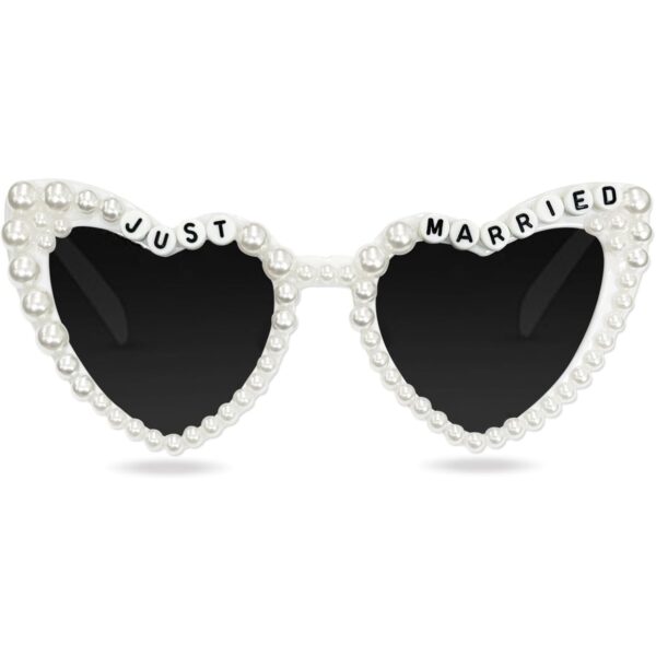 Ochelari Decorativi, Embo, Model Just Married, cu Perle, pentru Nunta, din PC, 15.3 x 5.7 x 14.5 cm, Alb