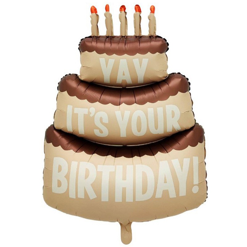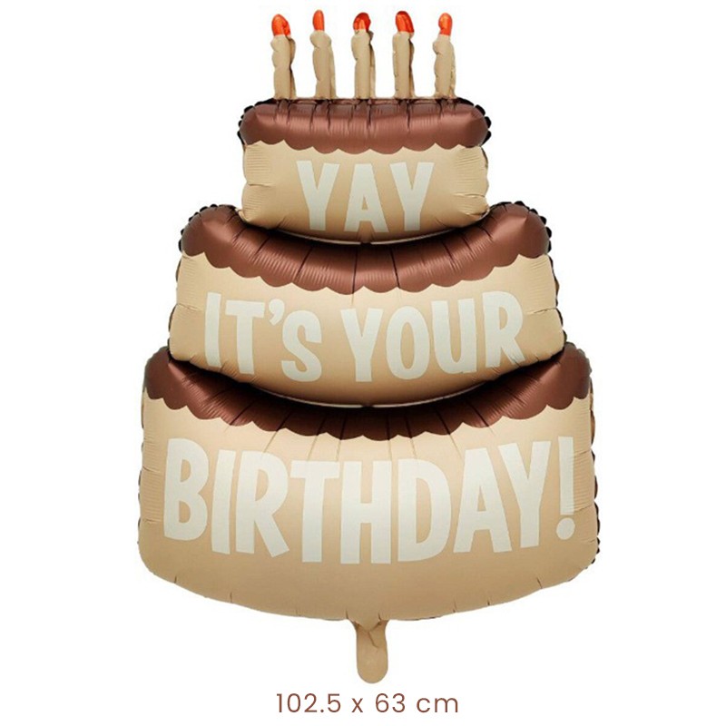 Balon din Folie Metalizata, Embo, Figurina Animata, Model Tort Aniversar, 102.5 x 63 cm, Ambalaj Individual, Pai Inclus, Umflare cu Aer sau Heliu, Maro