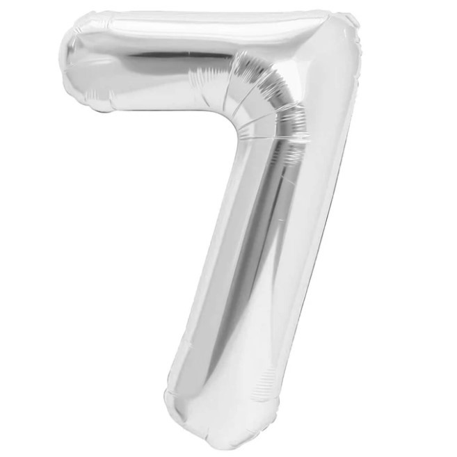 Balon din Folie Metalizata Embo, Figurina Cifra, Tema Aniversare 40 cm, Ambalaj Individual, Pai inclus, Umflare cu Aer sau Heliu, Argintiu, Cifra 7