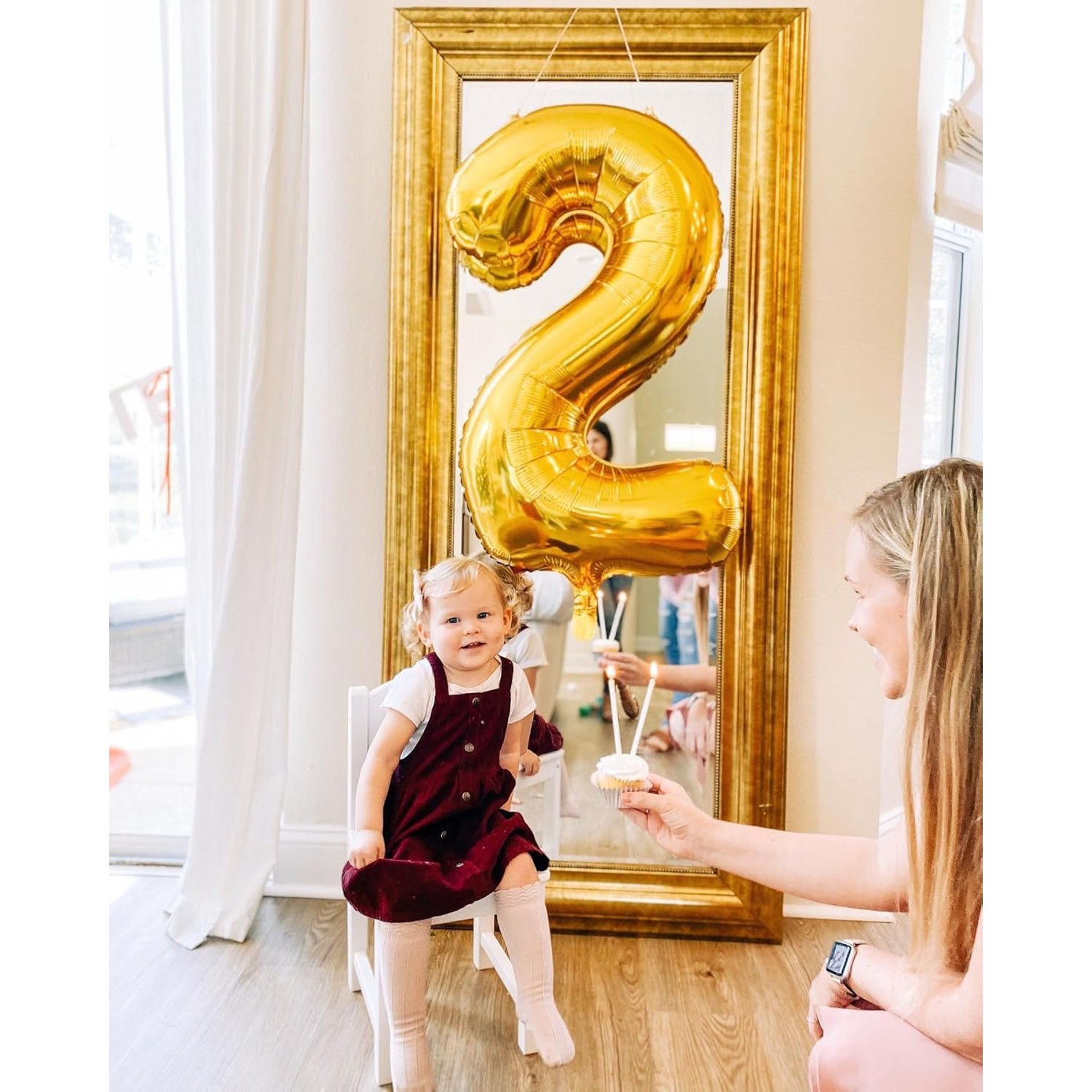 Balon din Folie Metalizata Embo, Figurina Cifra, Tema Aniversare 40 cm, Ambalaj Individual, Pai inclus, Umflare cu Aer sau Heliu, Auriu, Cifra 2