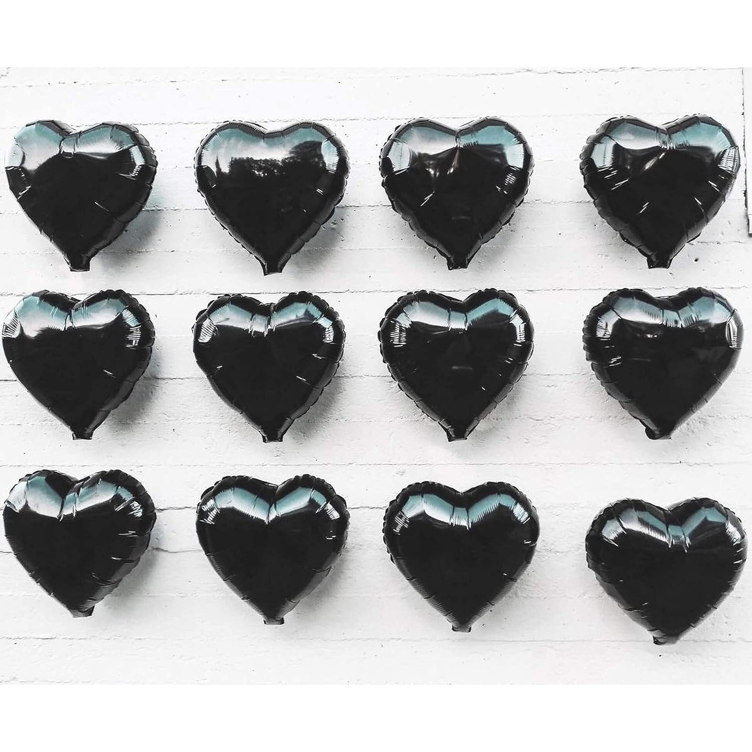 Balon din Folie Metalizata, Embo, Figurina Inimioara, Model Simplu, Tematica Iubire, 40 cm, Ambalaj Individual, Pai Inclus, Umflare cu Aer sau Heliu, Negru
