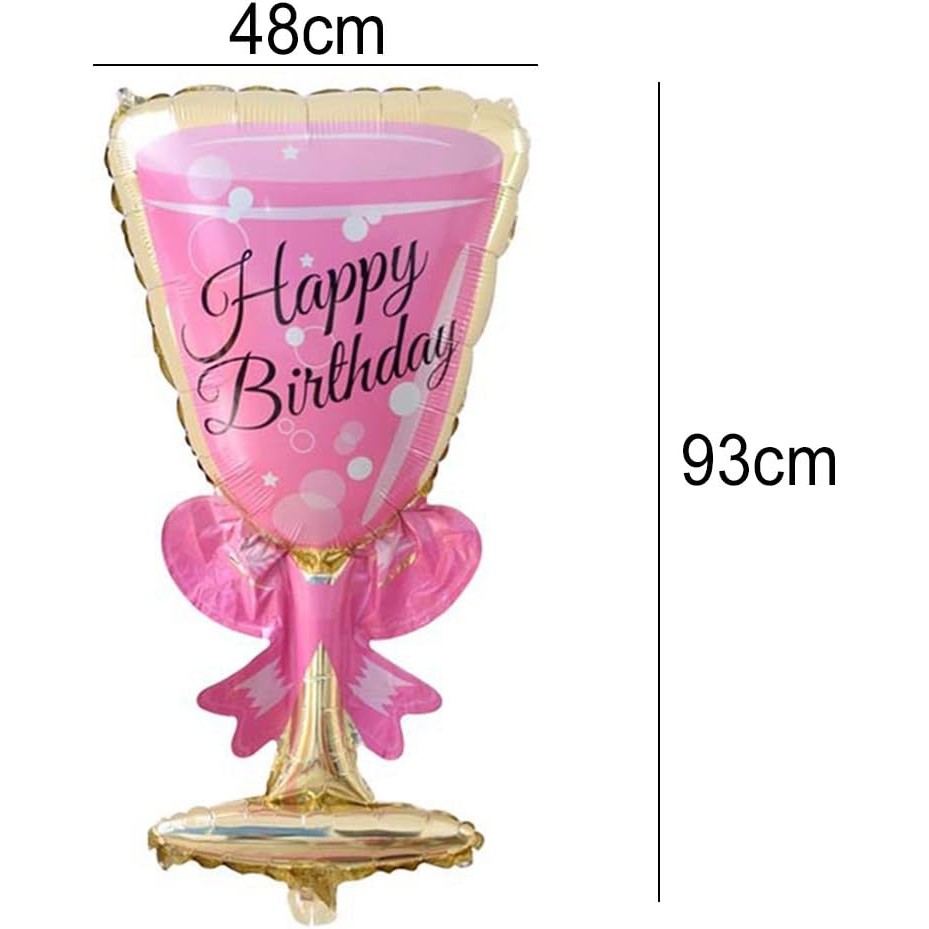 Balon din Folie Metalizata, Embo, Figurina Pahar de Vin, Tema Aniversare, 93×48 cm, Ambalaj Individual, Pai Inclus, Umflare cu Aer sau Heliu, Roz