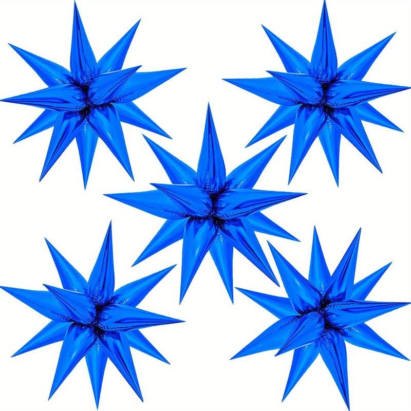 Balon din Folie Metalizata, Embo, Figurina Stea 3D, 66 cm, Ambalaj Individual, Pai inclus, Umflare cu Aer sau Heliu, Albastru