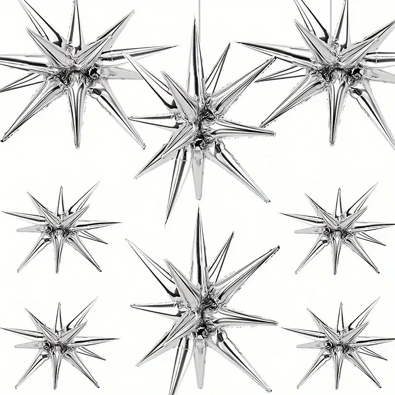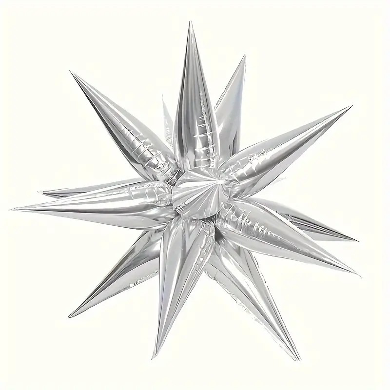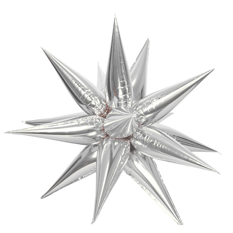 Balon din Folie Metalizata, Embo, Figurina Stea 3D, 66 cm, Ambalaj Individual, Pai inclus, Umflare cu Aer sau Heliu, Argintiu