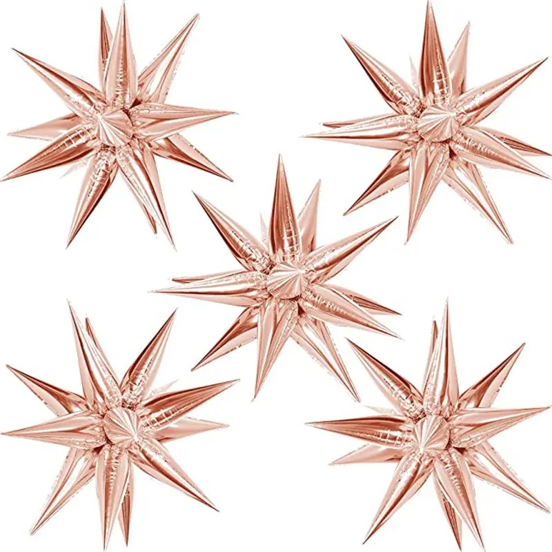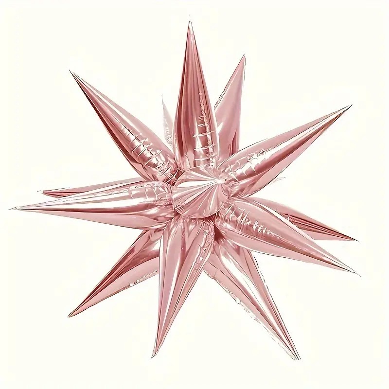 Balon din Folie Metalizata, Embo, Figurina Stea 3D, 66 cm, Ambalaj Individual, Pai inclus, Umflare cu Aer sau Heliu, Roz