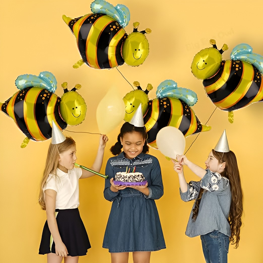 Balon din Folie Metalizata, Embo, Mini Figurine, Model Albinuță, 36x42cm, Ambalaj Individual, Pai Inclus, Umflare cu Aer sau Heliu, Multicolor
