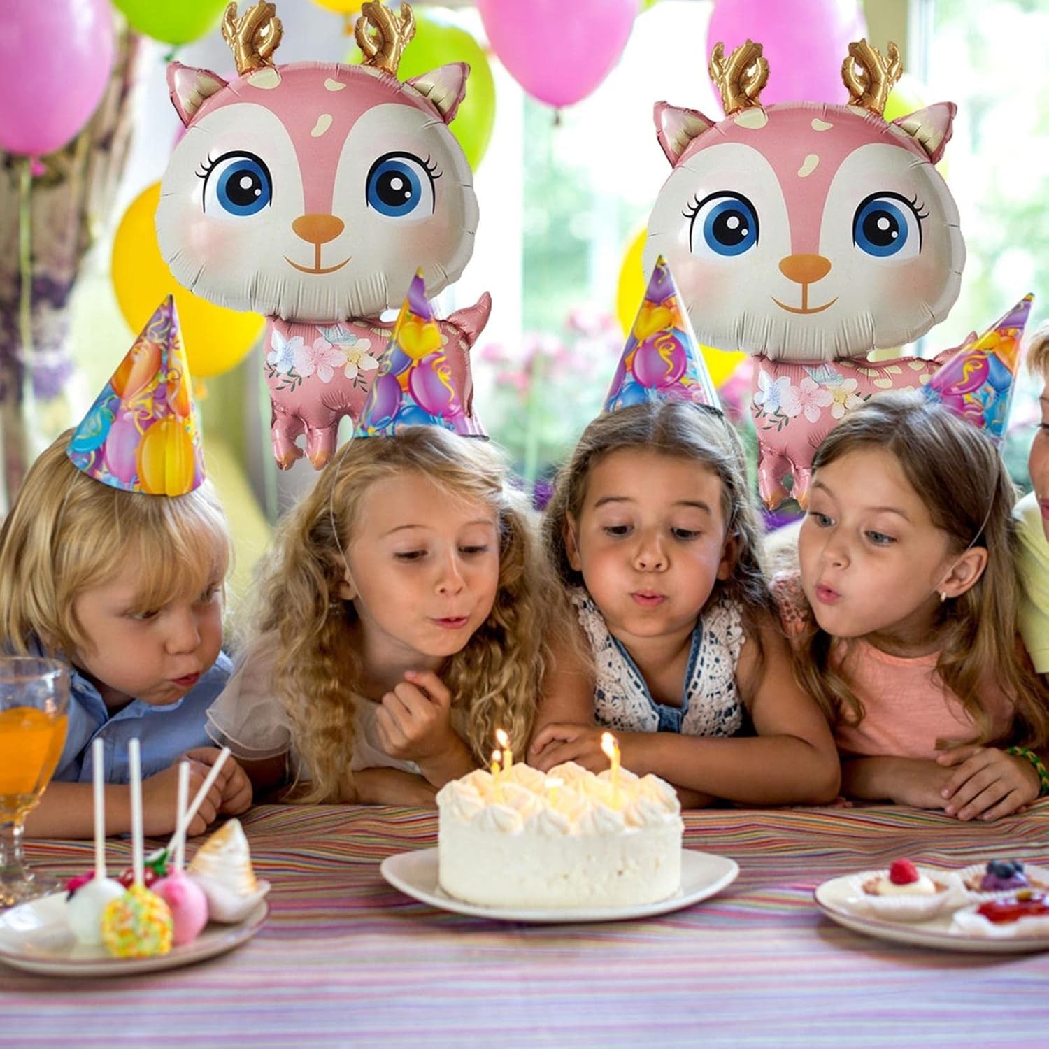 Balon din Folie Metalizata, Embo, Mini Figurine, Model Cerb, Tematica Aniversare, 49×74.5 cm, Ambalaj Individual, Pai Inclus, Umflare cu Aer sau Heliu, Roz