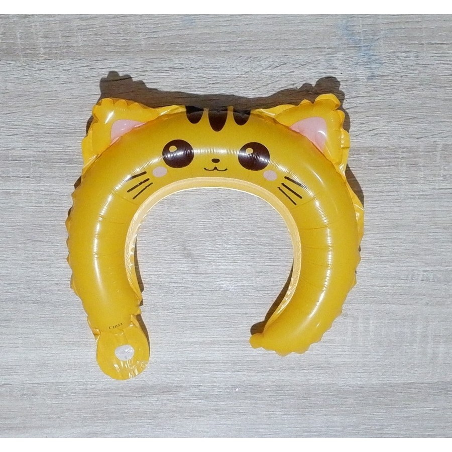 Balon din Folie Metalizata, Embo, Tip Coronita cu Urechi, Model Pisicuta, Ambalaj Individual, Pai Inclus, Umflare cu Aer sau Heliu, 24 x 29.5 cm, Galben