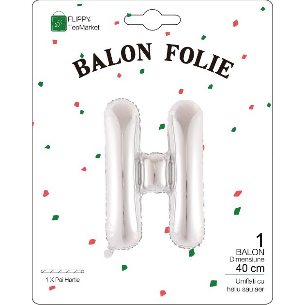 Balon Folie Metalizata Litera H, Embo, 40 cm, Umflati cu Heliu sau Aer, Ambalaj Individual, Pai inclus, Argintiu
