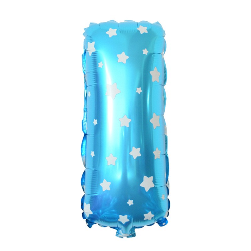 Balon Folie Metalizata Litera I, Embo, 40 cm, Cu Imprimeu Stelute, Umflati cu Heliu sau Aer, Ambalaj Individual, Pai inclus, Albastru