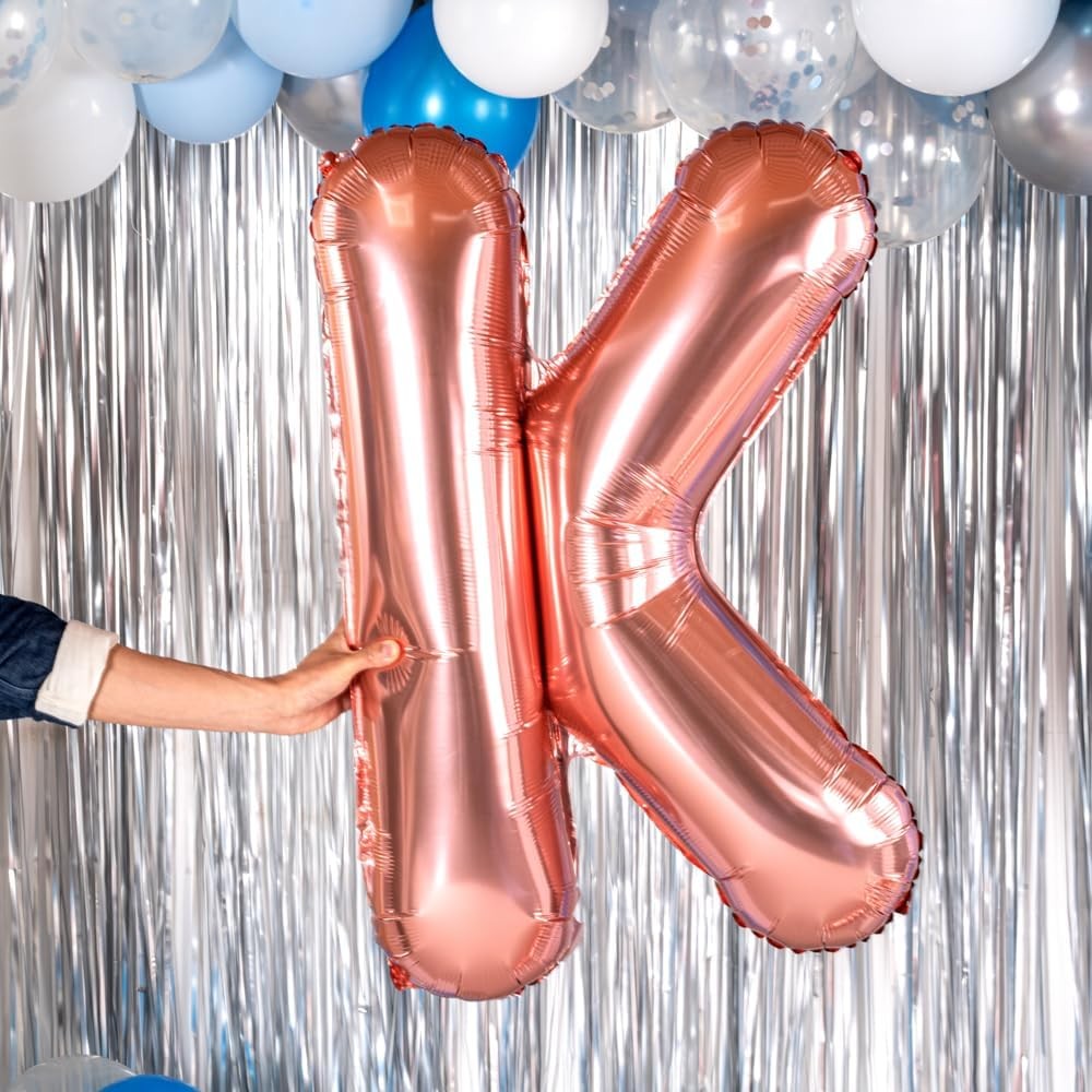 Balon Folie Metalizata Litera K, Embo, 80 cm, Umflati cu Heliu sau Aer, Ambalaj Individual, Pai inclus, Rose Gold