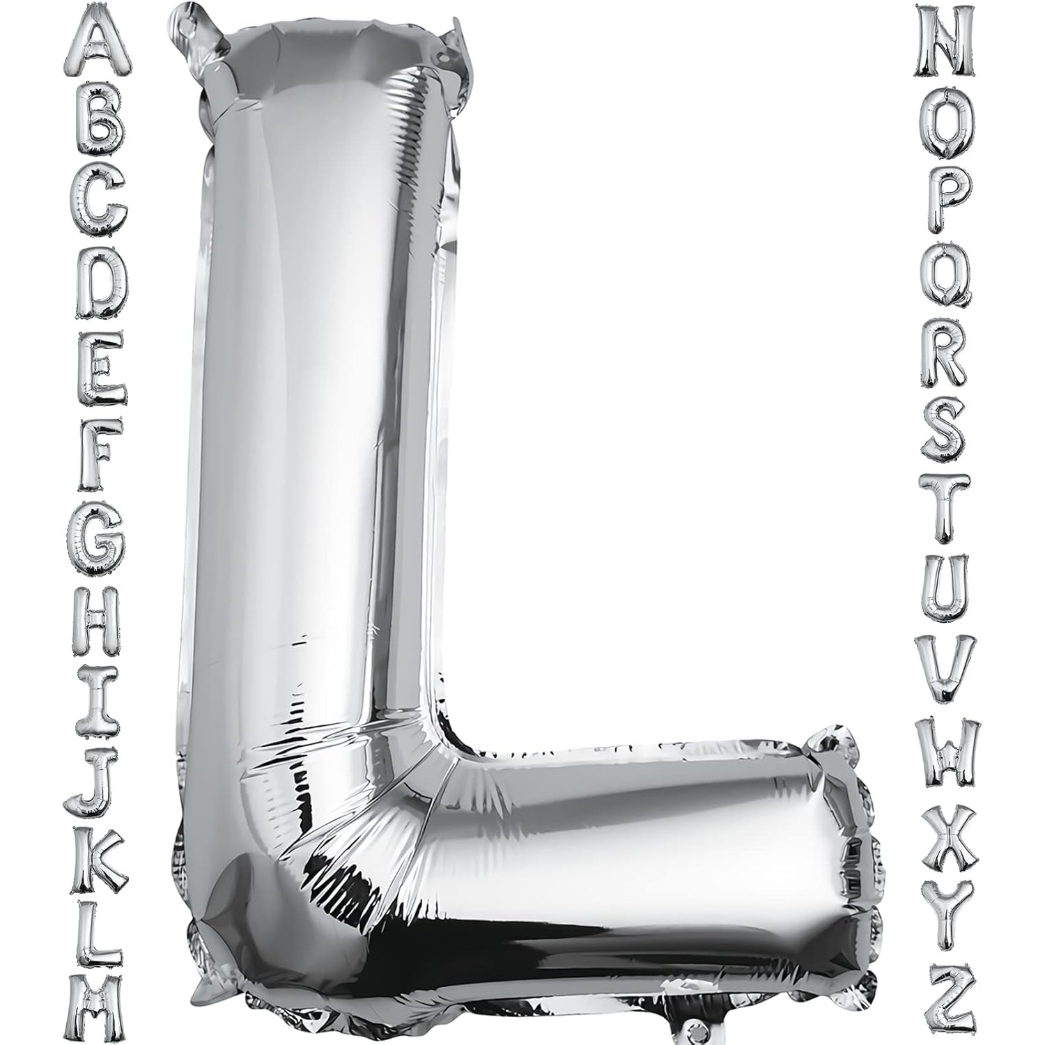 Balon Folie Metalizata Litera L, Embo, 80 cm, Umflati cu Heliu sau Aer, Ambalaj Individual, Pai inclus, Argintiu