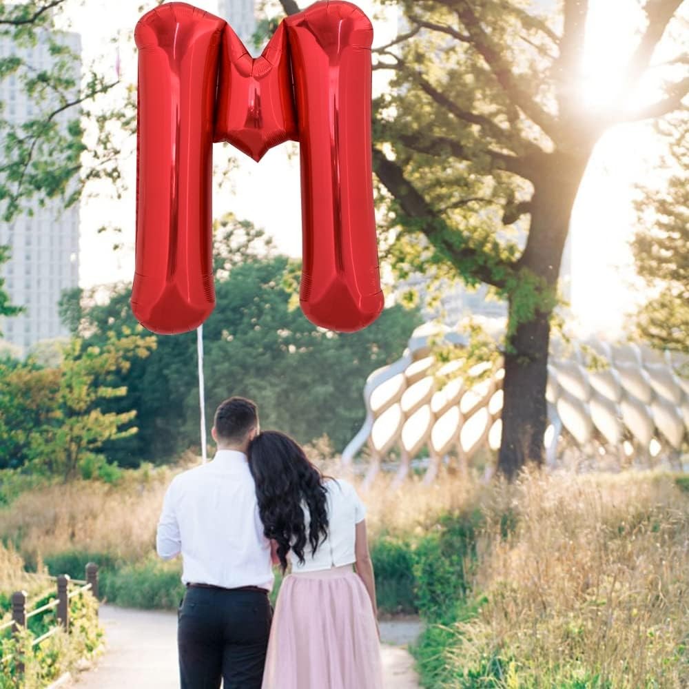 Balon Folie Metalizata Litera M, Embo, 40 cm, Umflati cu Heliu sau Aer, Ambalaj Individual, Pai inclus, Rosu